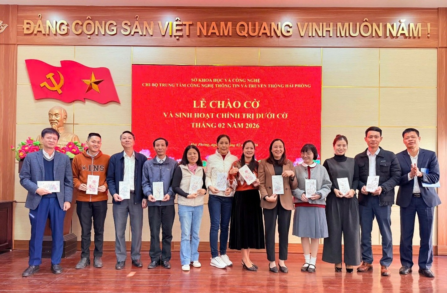 Sáng ngày 03/02/2026, tại Trung tâm Công nghệ thông tin và Truyền thông Hải Phòng, Chi bộ Trung tâm đã long trọng tổ chức Lễ chào cờ và sinh hoạt chính trị dưới cờ tháng 02/2026 với sự tham dự của toàn thể cán bộ, viên chức, người lao động trung tâm.
