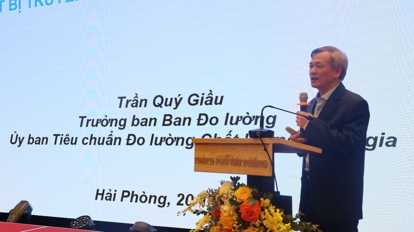Ông Trần Quý Giàu, Trưởng Ban Đo lường, Ủy ban Tiêu chuẩn Đo lường Chất lượng Quốc gia báo cáo tại Hội thảo.