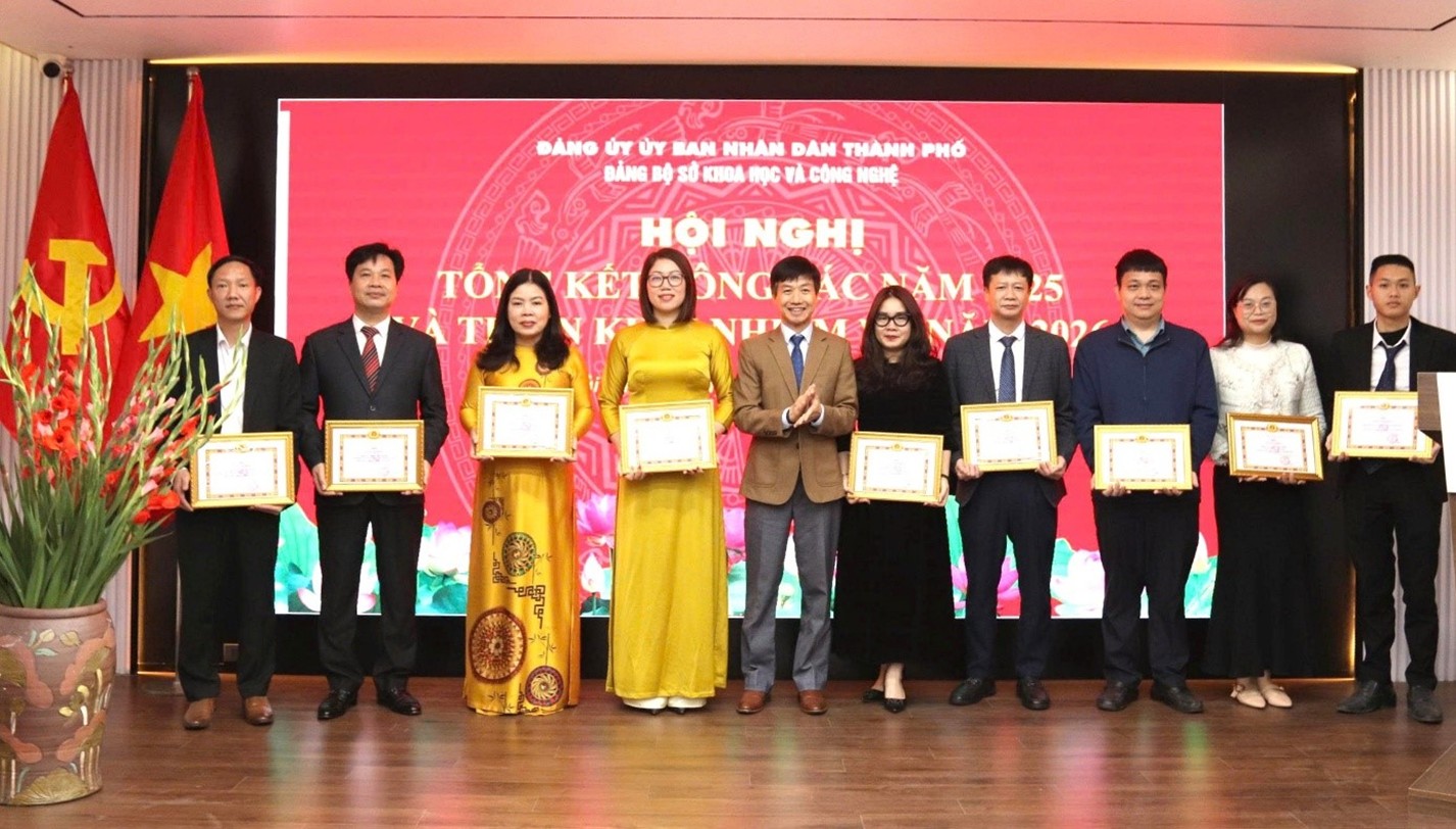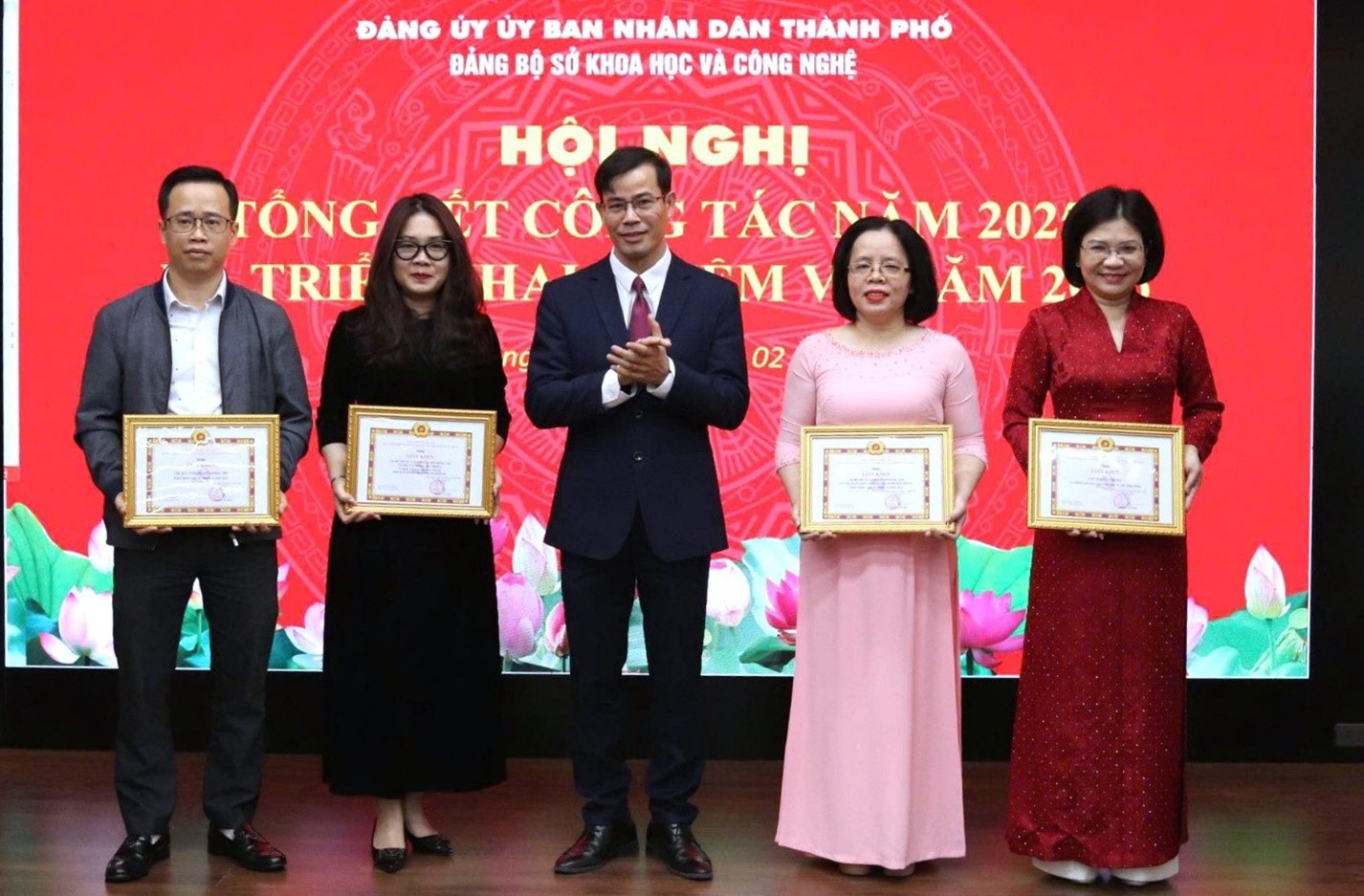 Hội nghị đã công bố Quyết định của Đảng ủy Sở Khoa học và Công nghệ khen thưởng các tập thể, cá nhân có thành tích tiêu biểu trong năm 2025. Theo đó, 02 chi bộ được công nhận hoàn thành xuất sắc nhiệm vụ, gồm: Chi bộ Công nghệ thông tin và Chi bộ Trung tâm Đổi mới sáng tạo và Ứng dụng khoa học – công nghệ Hải Phòng; 02 chi bộ được khen thưởng vì có thành tích nổi bật theo chuyên đề, gồm: Chi bộ Văn phòng và Chi bộ Trung tâm Công nghệ thông tin và Truyền thông Hải Phòng. Đối với cá nhân, 32 đảng viên được công nhận hoàn thành xuất sắc nhiệm vụ năm 2025; 07 đảng viên được khen thưởng do có thành tích nổi bật theo chuyên đề, đóng góp tích cực trong công tác xây dựng Đảng.